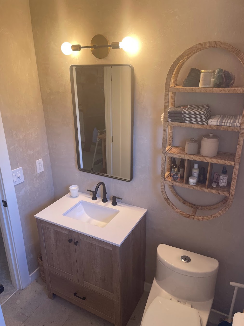 Tadelakt is a traditional Moroccan plaster technique that has been used for centuries to create waterproof surfaces. This unique method involves the application of a lime-based plaster, which is then polished and treated with a soap solution to make it waterproof and durable. Tadelakt finishes are often used in bathrooms due to their seamless, elegant appearance and resistance to moisture, however, more and more people are using Tadelakt on other surfaces like sinks, fireplaces, backsplashes, and accent walls.