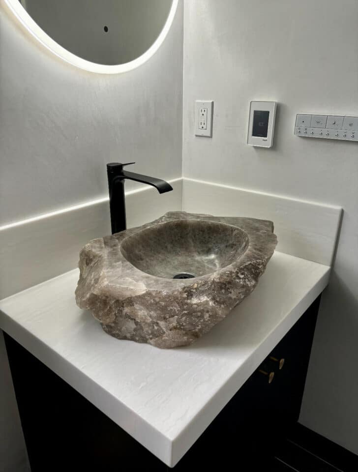 Tadelakt is not only aesthetically pleasing with its smooth, lustrous finish but also highly functional for bathroom environments. Its natural waterproof properties make it an excellent choice for areas exposed to water, such as showers and sinks. Additionally, Tadelakt is mold and mildew resistant, which contributes to a healthier bathroom environment.