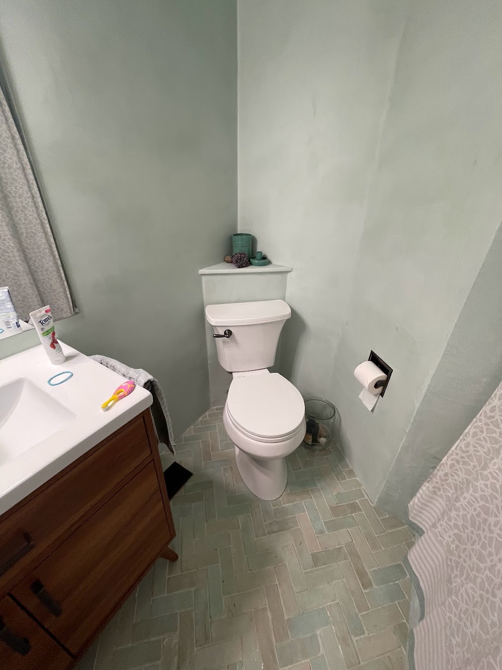 Installing a Tadelakt bathroom typically involves preparing the underlying surface or substrate in a similar fashion as you would prepare for tile. Then we apply several layers of the Tadelakt plaster, and finish it with the traditional polishing method and soap treatment to achieve its characteristic waterproof and shiny surface. After the surface has cured for about a week, we return to apply a wax coating. The process requires skilled craftsmanship to ensure the plaster adheres well and achieves the desired aesthetic and functional qualities.